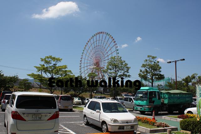 湖畔に建つびわ湖大橋米プラザの建物は結構でかくて綺麗な印象。ガラスにも映っていますが、後ろを振り向くと大きな観覧車が目に飛び込んできます。