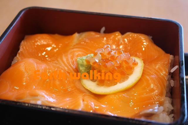 スタンプを押したところで、ここらでお昼ご飯にすることに。道の駅の中にあるレストランで「鮭トロ丼」を注文。とってもおいしかったですよ♪
