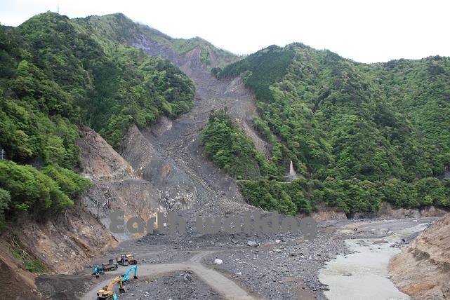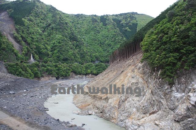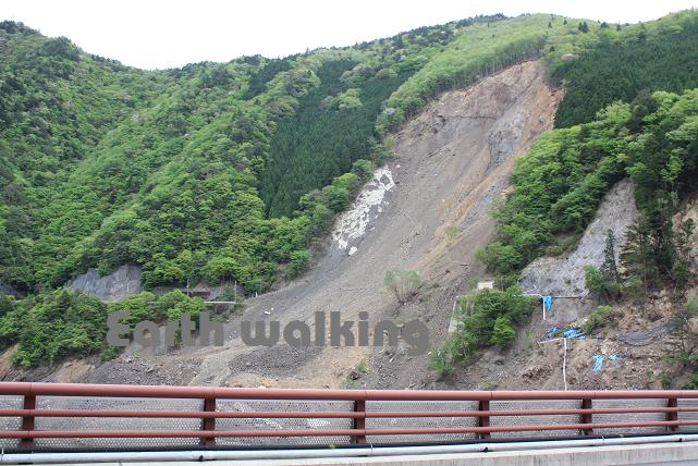 スタンプを押して、次の道の駅へと国道168号線を北上します。途中、昨年の土砂災害の傷跡が生々しく残っていました。復旧にはまだまだ時間がかかりそうですね。。。