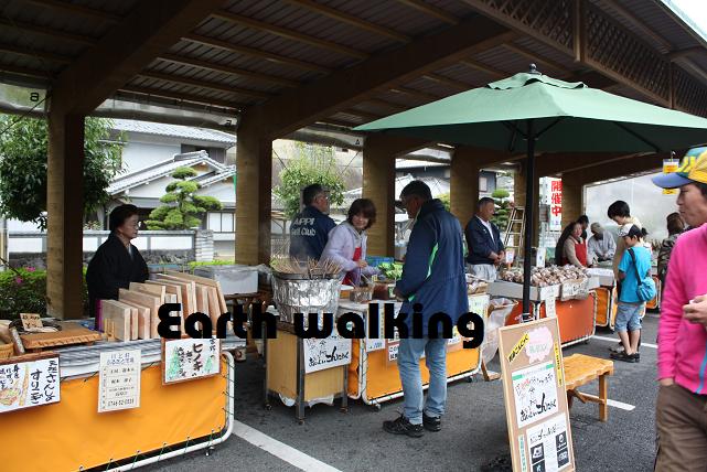 隣にはおそらく町役場と思われる施設があって、道の駅に来た人はそこの駐車場も使えるようになっていたのですが、駐車場の一角で「川上村 ふるさと市場」が開かれていました。手作りのテーブルやイスのほか、盆栽や花、そして鮎の塩焼きや串ものなども売られていました。
