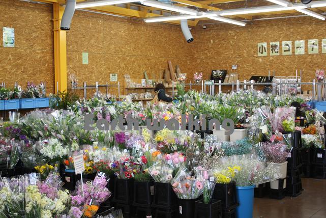 農協の直売所は「あすかて くるで」という名前だそうです。中には生花から果物や野菜、米まで広い建物の中で様々なものが売られていました。