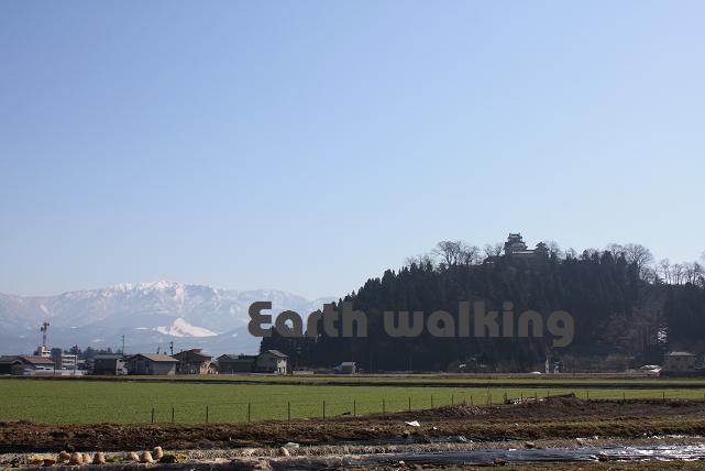 そこから軽くひと山越えると大野市に。前方の小高い山の上には越前大野城が見えます。