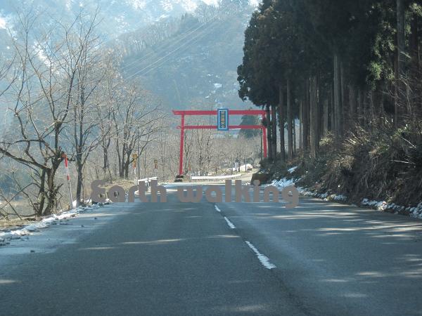そのまま進んでいくと九頭竜へと続く山道に入っていきます。まずは安全運転を祈願した鳥居がお出迎え。