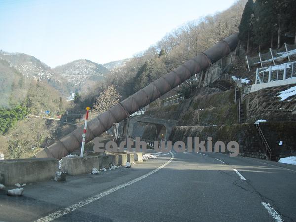 そして雪解け水を通すぶっといパイプをくぐって、ひたすら山道を進みます。
