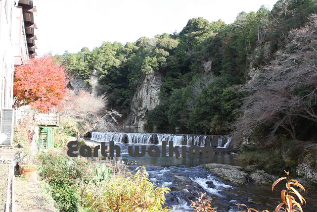 車を走らせて15分ほどでした。途中に猪名川の名勝・屏風岩のそばを通過しました。北摂第一の名勝といわれ、その形が屏風を立てた姿に似ているところから名前がつけられたそうです。