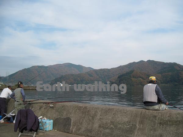 実はこの日のメインの目的は釣りでした。釣りをしていた波止場からは紅葉に包まれた山がみれてとっても良い景色♪