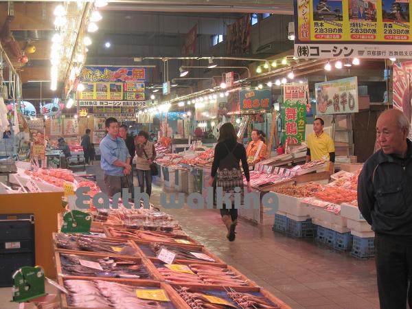中にはとれたての魚が並んだ魚市場になっています。その場で調理してくれるので色々な種類の新鮮な魚を食べれますよ♪その他にもどんぶり屋さんや干物やつくだ煮等を売っているお店が入っています。