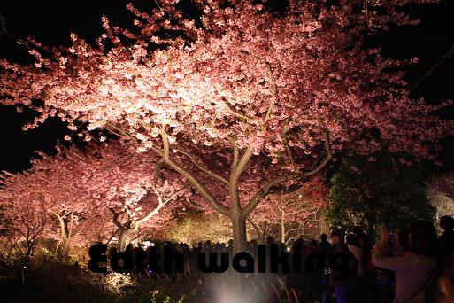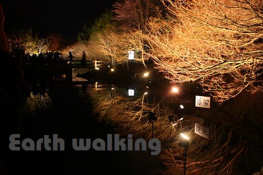 外に出るとあたりは真っ暗。イルミネーションを待つ行列ができています。桜がライトアップされて綺麗ですね~。