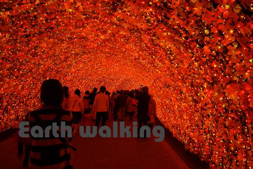 列に並んで待つこと数十分で光のトンネルへ到着。光のトンネルをみるのは初めてではないのですが、圧倒されてしまいますね。すごく幻想的。