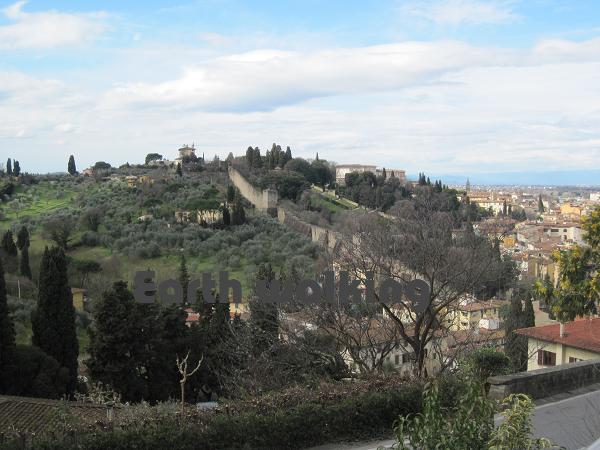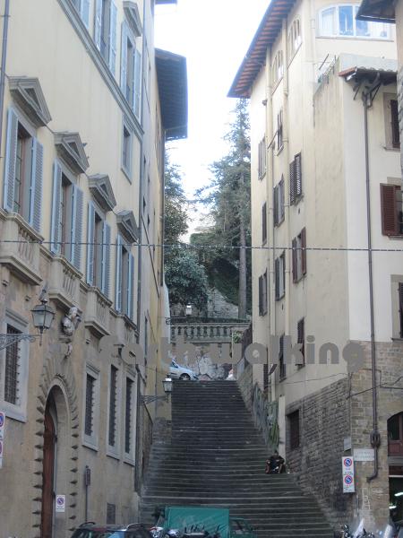 路地を抜けて、ミケランジェロ広場(Piazzale Michelangelo)の方へ坂を登っていきます。遠くに見えているのは、バルディニ庭園(Giardino Bardini)でしょうか。ここやボーボリ庭園はとっても有名な庭園でこのあたりに集中しているようですが、今回はパス。