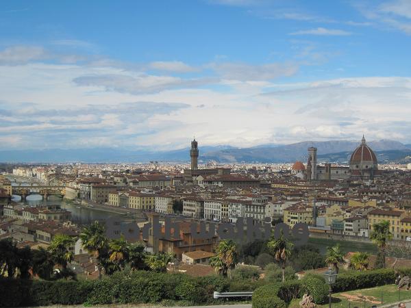 そして坂を登ることまもなくして、ミケランジェロ広場(Piazzale Michelangelo)に到着。眼にはフィレンツェ(Firenze、Florence)の街並み飛び込んできます。
