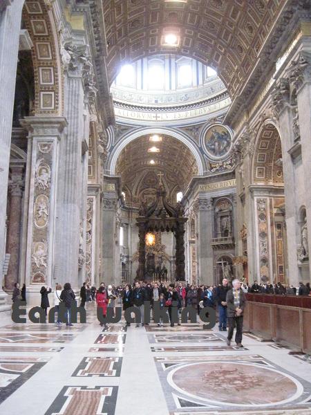 建物中央の部分は身廊(The Nave)というのかな??奥にあるバルダッキーノの大天蓋(Bernini's baldacchino)まで続いています。