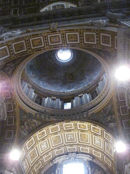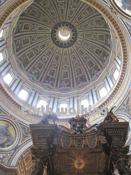バルダッキーノの大天蓋(Bernini's baldacchino)の上は巨大な大円蓋(クーポラ)があります。ミケランジェロ作。迫力満点。