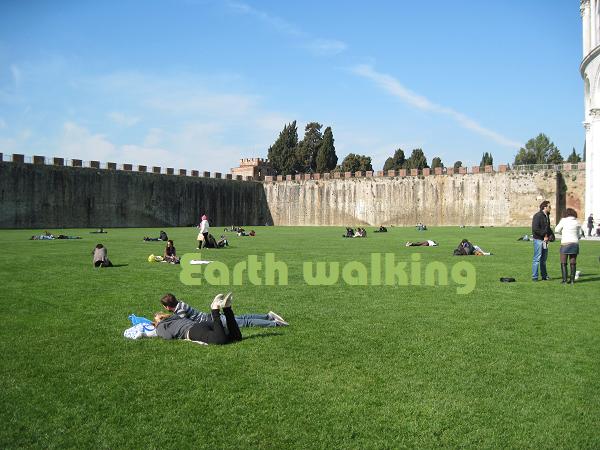 さらに天気も良かったこともあり緑の芝生と真っ青な空とのコントラストがすばらしいです。ここピサのドゥオモ広場(Piazza del Duomo)が世界で最も美しい広場と言われる由縁が納得できますね。シンプル、清潔、美しい、のどかってな感じ。