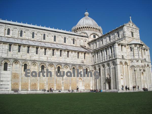 とうとう『ピサのドゥオモ広場(Piazza del Duomo)』に到着。ちょっと左方向に進むのが早すぎたみたいで、思っていた場所とは逆から広場に入ったのですが、いきなり目に飛び込んできたのは・・・・
