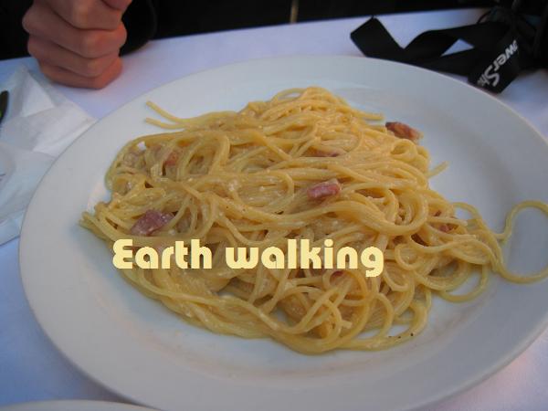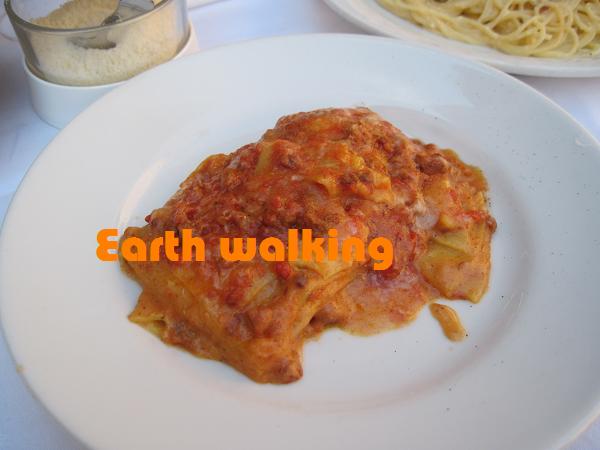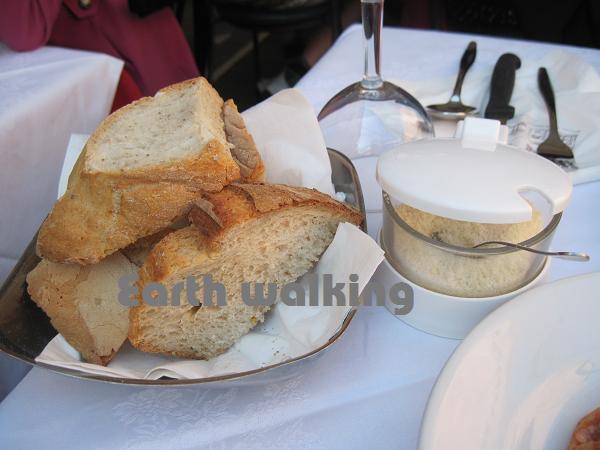 まぁ、たまには贅沢してもいっか♪ってことでそのうちの一軒のテラスでランチタイム。ラザニアとカルボナーラを注文。パンはおまけ。っていうわけもなく、食べたらお金をとられます。