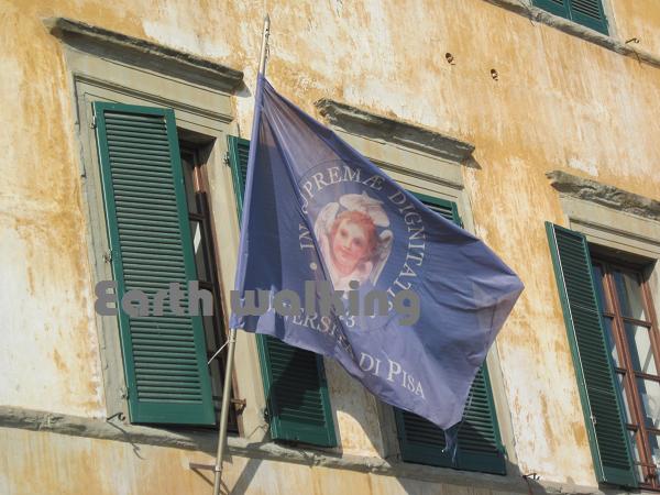 この川沿いにはピサ大学(Università di Pisa)があります。イタリアで最も古い大学のうちの一つだそうで、イタリアの研究機関の中で第1位にランキングされ、ヨーロッパの主要大学の中でも常に30位以内に位置している名門大学なんだそうです。天使の絵が素敵ですね♪