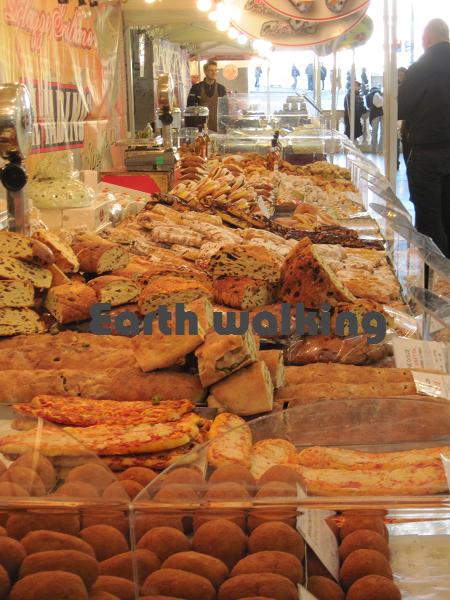 橋を渡ってすぐのところにはちょっとしたマーケットがひらかれていて、焼きたてのパンや、オリーブ、その他の香辛料などが売っていました。どれもおいしそう。。。昼飯を食べたばっかりだったので、何も買わなかったけど。