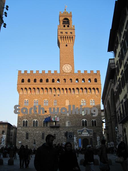 この建物はヴェッキオ宮殿(Palazzo Vecchio)といって現在も市庁舎として利用されているそうです。しかも、レオナルド・ダ・ヴィンチの幻の壁画「アンギアーリの戦い」が500人大広間にあるヴァザーリの壁画の裏側に隠されているそうです。