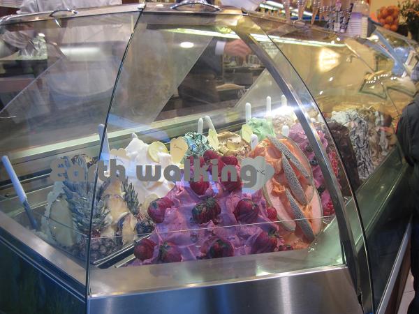 さらに街を散策。おいしそうなジェラートが売っていました。本場のイタリアンジェラートを食べてみたい気持ちもあったのですが、ちょっと日が暮れてきて寒かったのでパス。