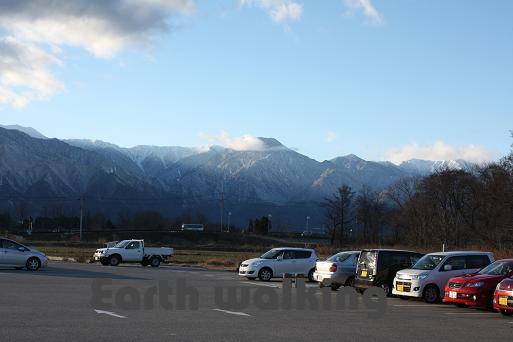 駐車場からは北アルプスの山々を望めます。壮大ですね~。