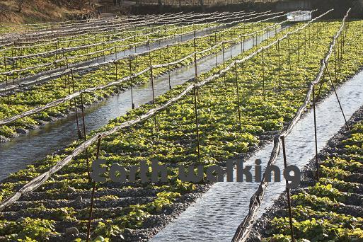 その軽食コーナーから少し進んで小坂を登ると、目の前にはわさび、ワサビ、wasabi。わさびってこんな風に育つんですねぇ。お刺身とかについている練ったペースト状のわさびからはこの風景は想像できませんね。