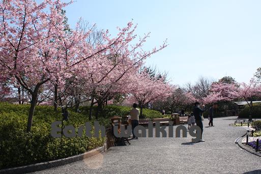 入園すると桜が目に飛び込んできました。早い。しかもほぼ満開な感じ。