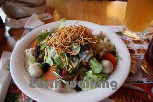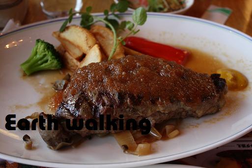 デュンケルとヴァイツェンのビールを片手にサラダとステーキでランチ。肉厚すぎて顎が疲れました(笑