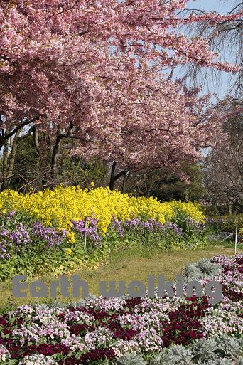 腹ごしらえしてのんびりしていると、時間はすでに15時。外が暖かいうちに園内散策しましょうか。ってことで店をでて散策。園内のレイアウトは同じですが、いろいろな花が咲いているので前回とは違った印象。前回は12月だったので花が咲いていなくて寂しい感じでしたからねぇ。