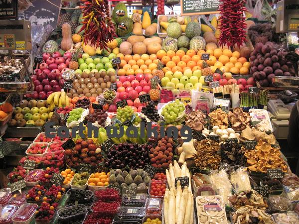 その後、旧市街地の方へ戻って今後の作戦会議。スペイン人の友人の仕事が終わるのを待って、その後一緒に飯を食う事に。仕事が終わるまでは街をぶらぶらすることに。途中、見かけたカルフールで食材を物色したり、マーケットを覗いてみたり。マーケットではスイーツから、野菜、魚介類までさまざまな物が売られていました。