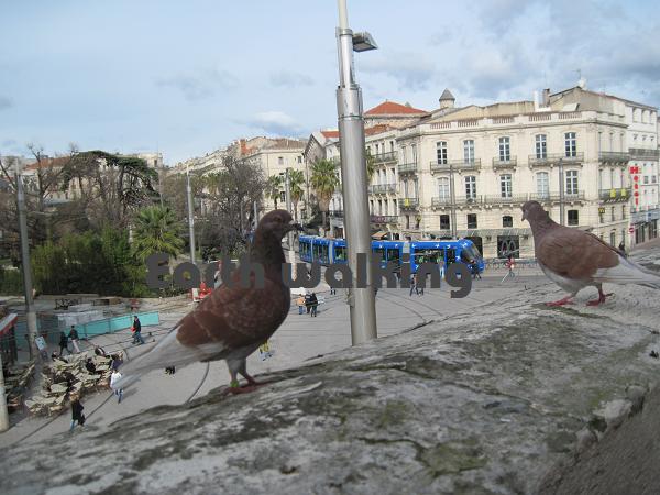 モンペリエ駅(Montpellier)では次の乗り換え列車まで約1時間待ち。ちょうどお昼時間だったので、駅中のカフェでコーヒーを頼んでもってきたパンとサラミで昼食。鳩が多くて、パンくずやサラミを狙ってて落ちついて食べれませんでした(笑
