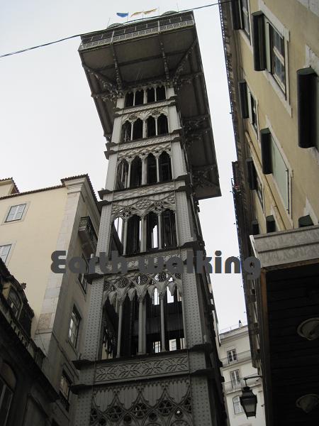 ロシオ駅の方へいったん戻って、そこからメインストリート沿いに海へ向かっているとサンタ・ジュスタのリフト (Elevador de Santa Justa)と呼ばれるエレベーターを発見。ロンプラ