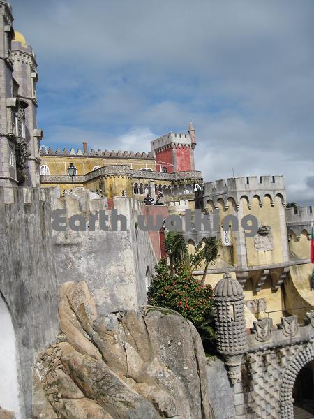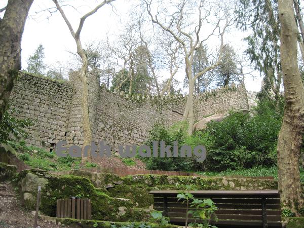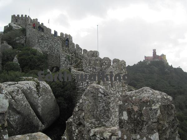 こんな感じで城壁が建てられています。ちょっと万里の長城みたいですね。右に見える山頂に建てられているカラフルな建物がペーナ国立宮殿(Palácio Nacional da Pena)です。