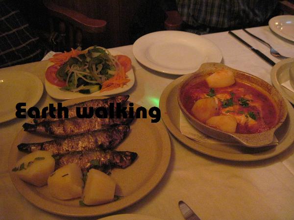 レストランではイワシの塩焼きとストーンバス、パエリア風の雑炊みたいなのを頼んで3人でシェア。あと、それぞれビールを頼んで一人€13。結構お得♪イワシは塩がしっかり効いていて臭みも少なくておいしかったです。