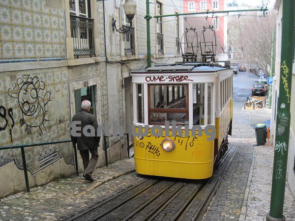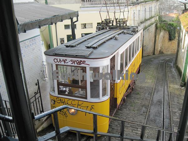 ポルトガルの首都リスボンは別名『7つの丘の街』といわれるほど丘が多く、当然坂道だらけ。そんな街中の丘の上下移動の為にケーブルカーが利用されていて、リスボンの街の名物になっています。そのケーブルカーがホステルの近くにもありました。