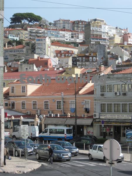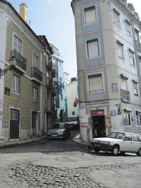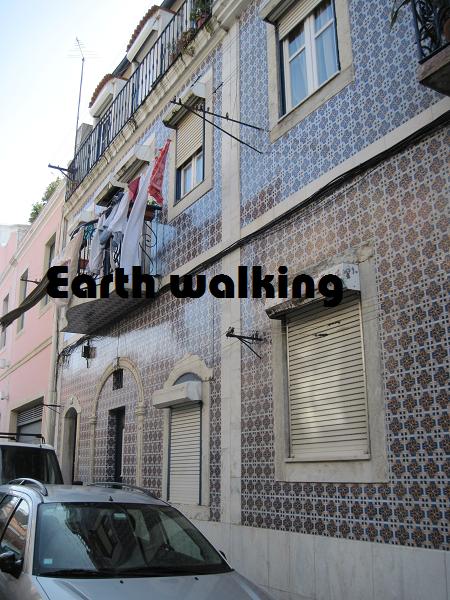 とりあえずサン・ジョルジェ城へ向かって丘登り開始。狭い階段や入り組んだ路地をひたすら進みます。町並みは結構アートな感じで、古い建物や壁に書かれた絵が良い雰囲気を演出していました。いくつかの建物の壁は装飾されたタイルで埋め尽くされていてかなりかわいらしい感じです。このタイルはポルトガルの有名な装飾法みたい。